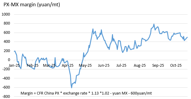 Currently, PX margin based on MX in Chines yuan remains healthy. Shenghong and Weilian Chemical continues buying MX as feedstock supplement. However, the support from PX is limited, and if gasoline blending demand remains slack, it would be difficult for toluene and MX price to rally.