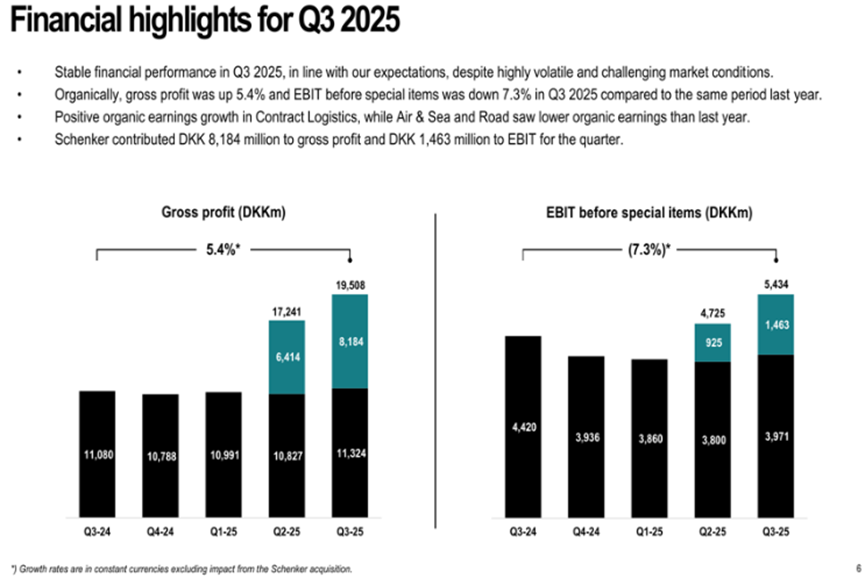 Danish global logistics giant DSV released its financial report for the third quarter of the 2025 fiscal year on October 24.